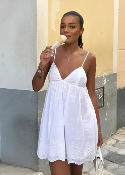 Das Mini-Sommerkleid ist der Basic-Hit der Sommerkollektion: denn im Sommer gibt es kein "Kleines Schwarzes", sondern nur das "Kleine Weiße" 😏