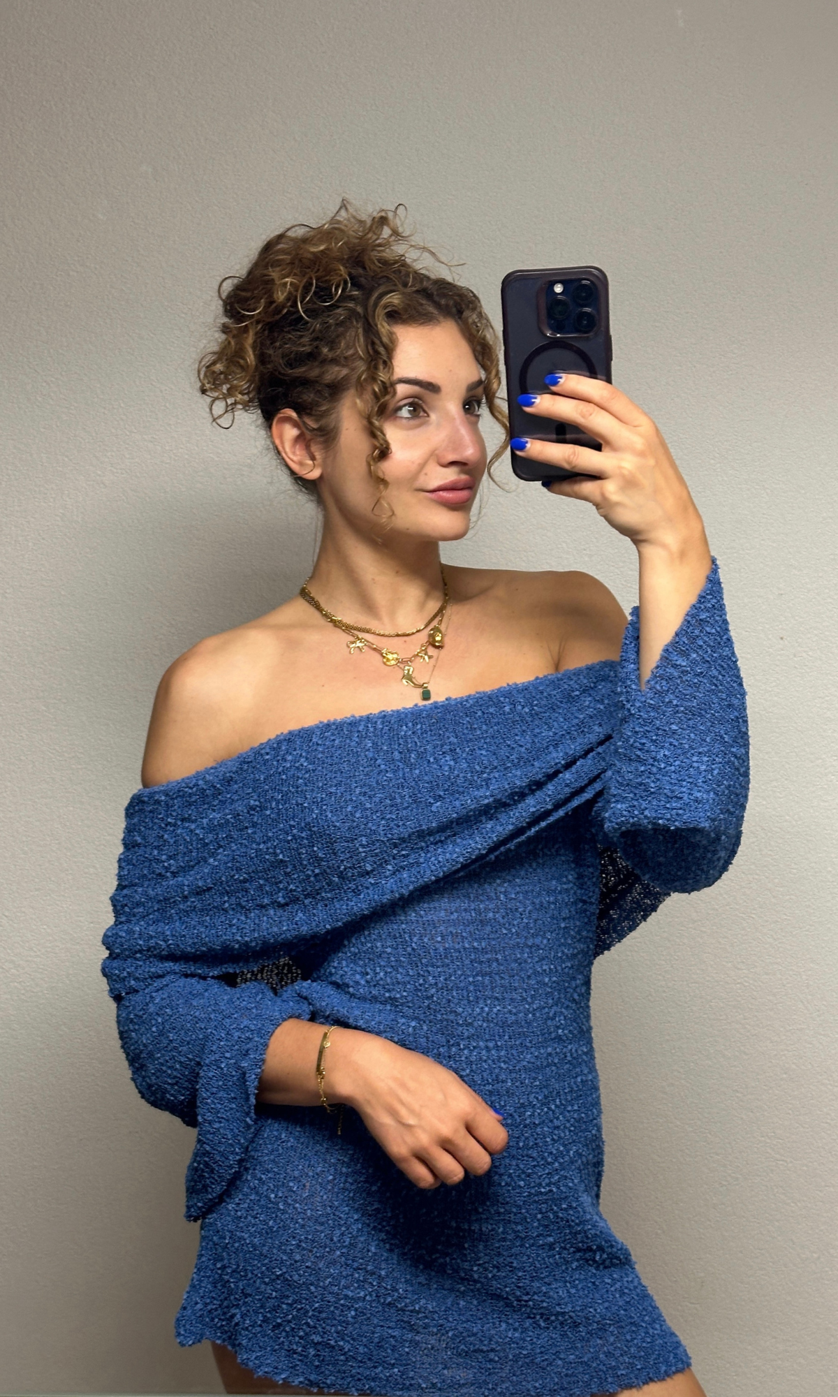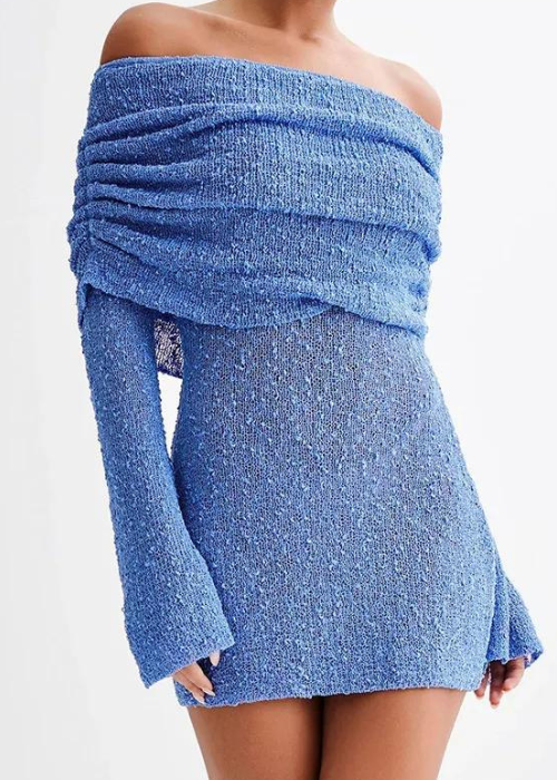 CORA Mini Kleid: Elegantes Off-Shoulder Strick Kleid
