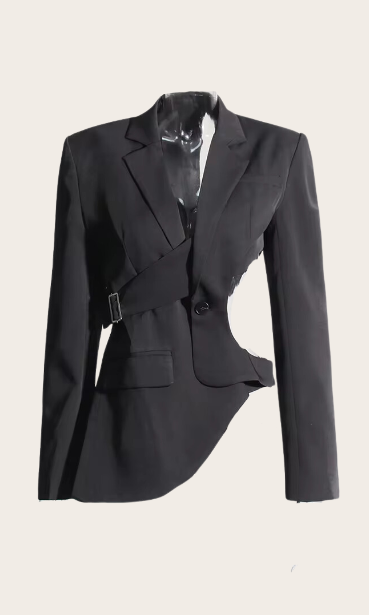 Der Eclipse Blazer ist ein Statement-Piece wie kein anderes. Mit seinem einzigartigen Cut-Out-Design verleiht er deinem Look eine sexy und moderne Note. Perfekt für alle, die an besonderen Abenden auffallen wollen.