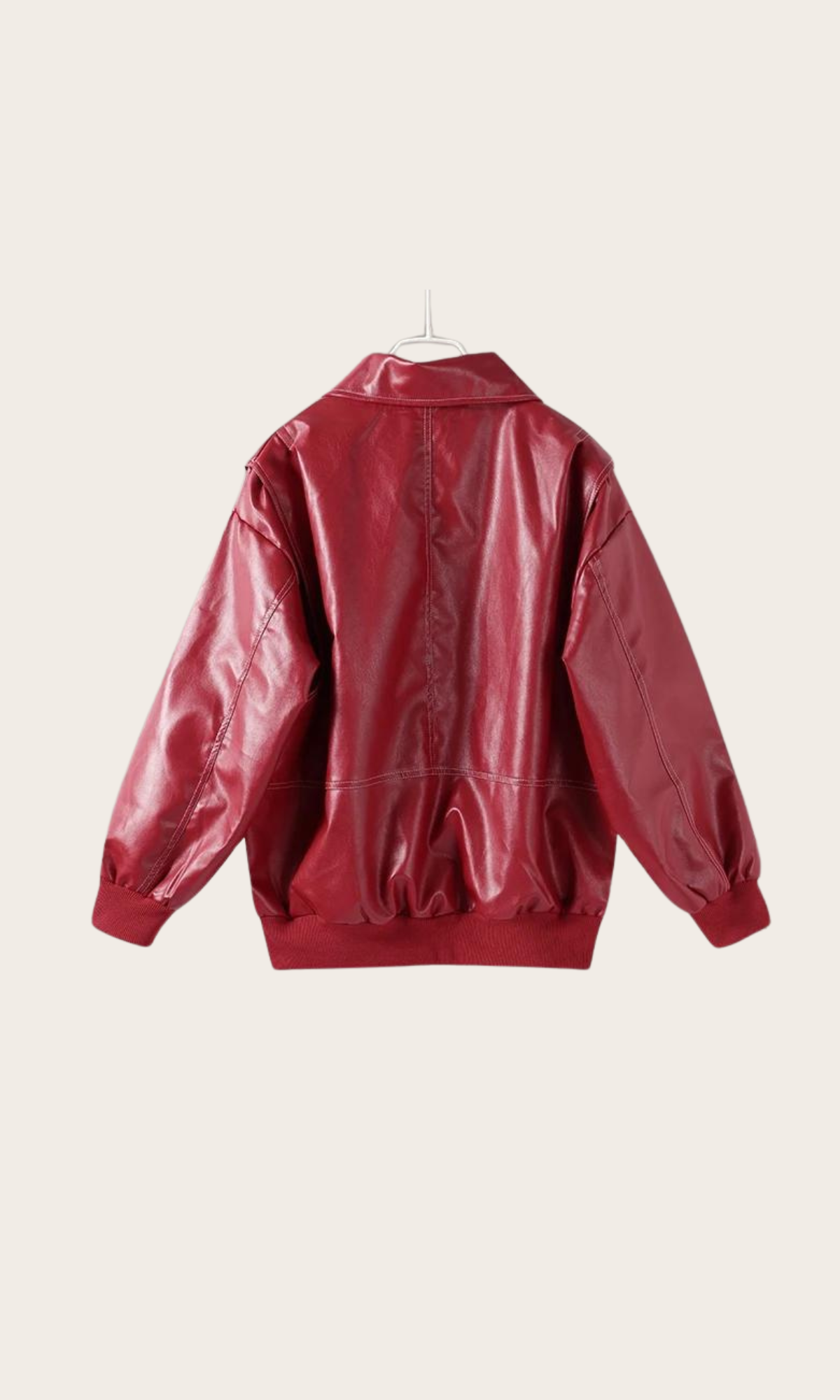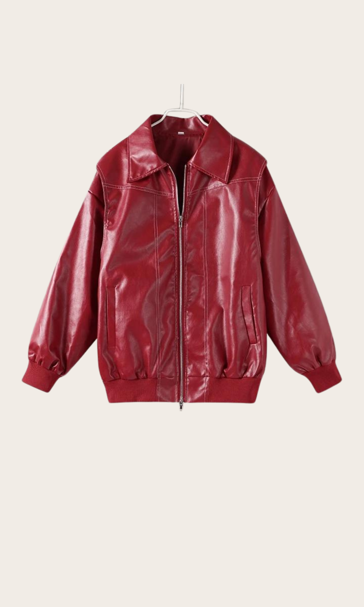 JACKY Jacke aus veganem Leder in Rot – Oversized Fit