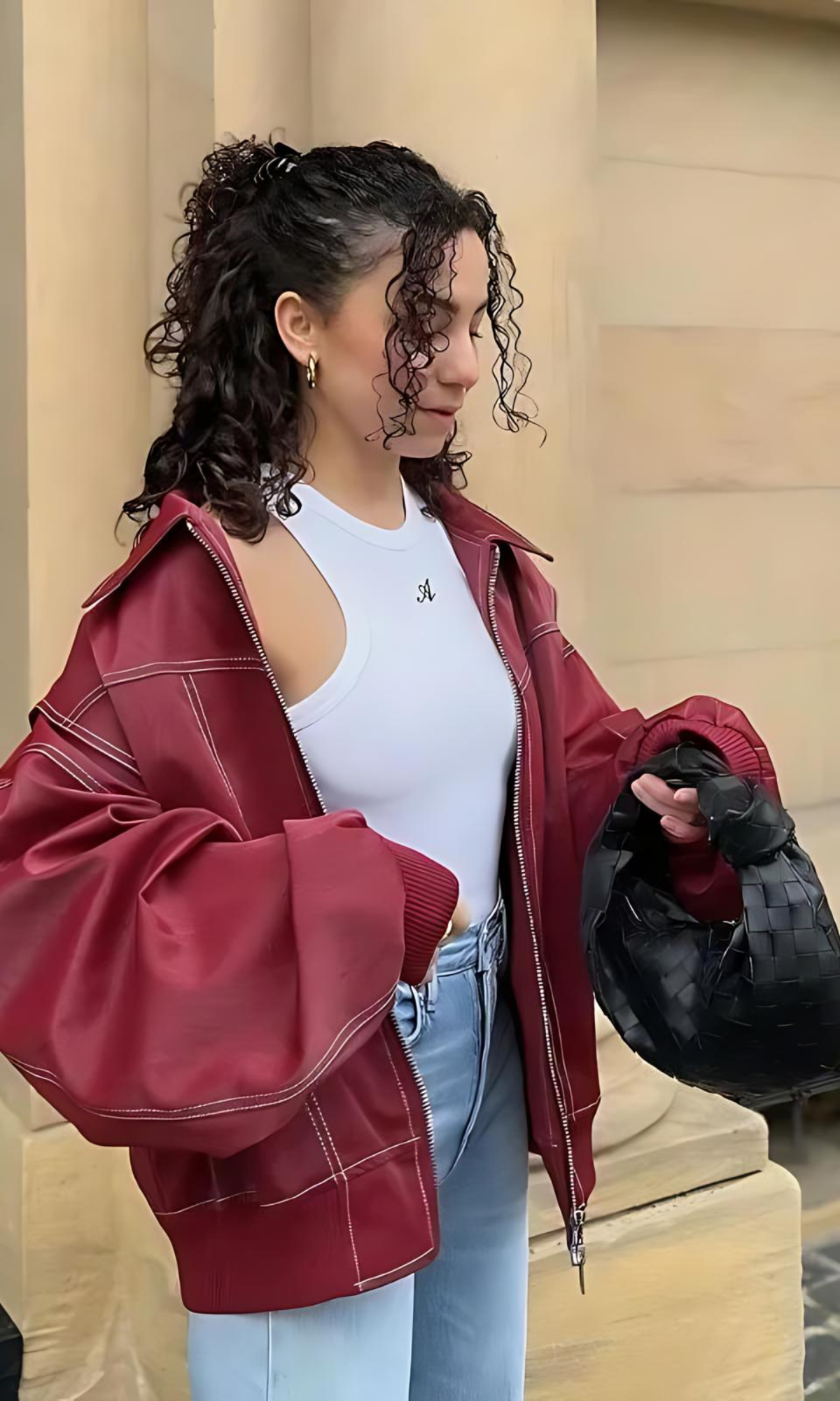 Die JACKY Jacke besticht durch ihr modernes Design und die angesagte Oversized-Passform. Gefertigt aus hochwertigem veganem Leder in der Trendfarbe Rot, sorgt sie für einen auffälligen, stylischen Look. Ob im Alltag oder für besondere Anlässe – diese Jacke verleiht jedem Outfit einen coolen und edlen Touch.