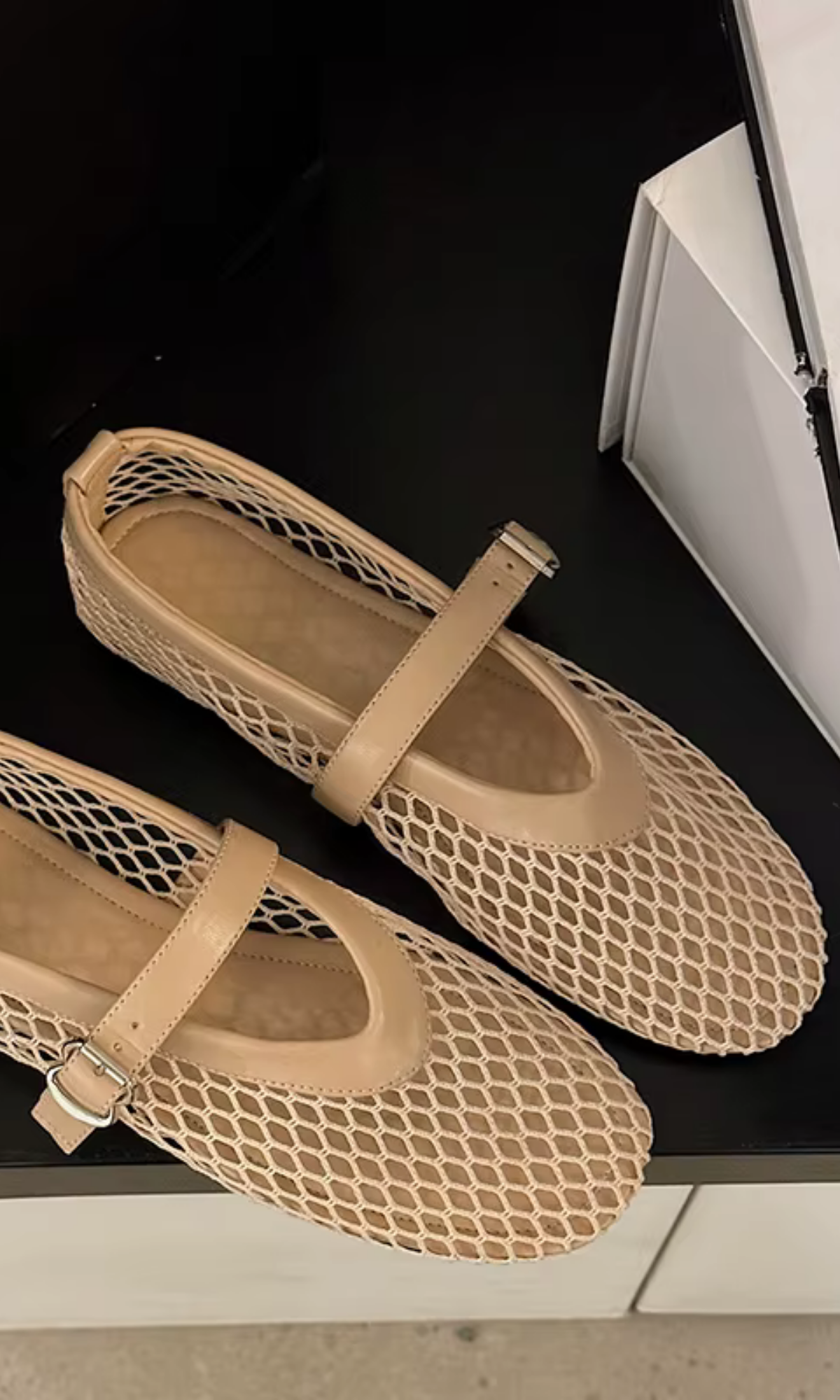Die Nella Ballerinas greifen den Trend auf und machen ihn tragbar – für jeden Tag, aber nie langweilig. Das feine Mesh legt sich soft um deinen Fuß, die minimalistische Silhouette sorgt für das gewisse Understatement. Ob zur Baggy Jeans, zum Maxirock oder zum Slipdress – Nella passt sich an, ohne sich anzupassen.